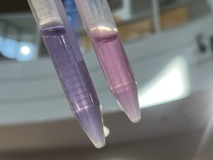 追記:おまけで、バタフライピーティーというお茶を使って、酸性/アルカリ性で色が変わる実験も実施しました。