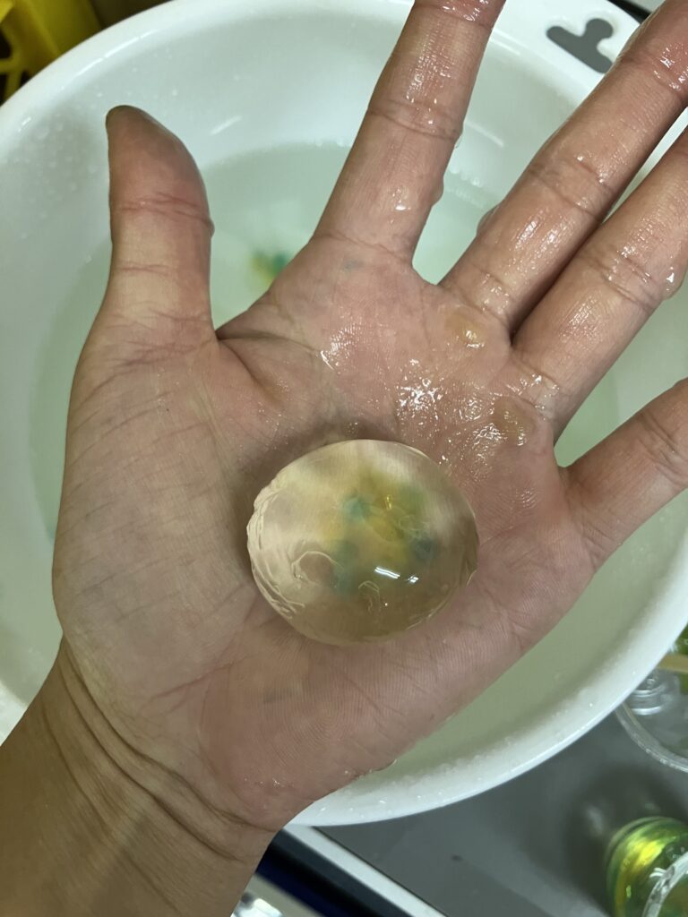 実験内容は、「つかめる水をつくろう」「スーパーボールをつくろう」「火山噴火実験」の3本建てです。