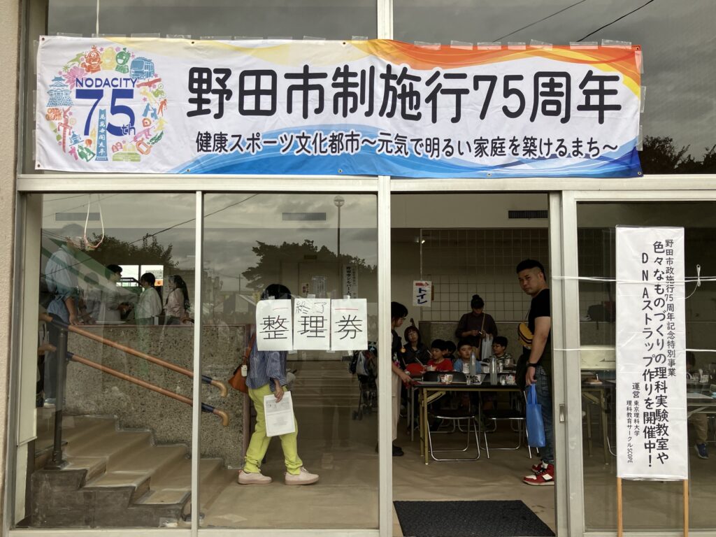10月19日(日)は、野田市文化センターにて「野田市産業祭 野田市制施行75周年特別事業」の一環で、理科実験教室の企画を行いました。