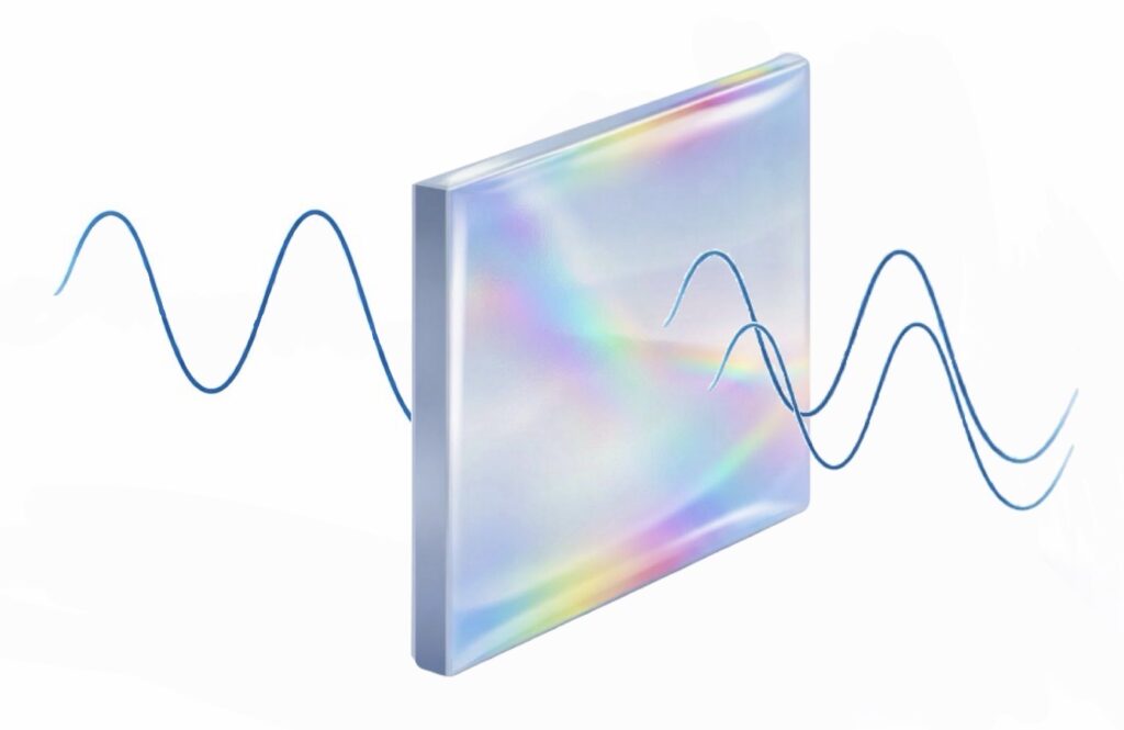 セロハンテープには、通り抜ける光を「速く進める波」と「遅い波」の二つに分けるという特殊な性質があります。