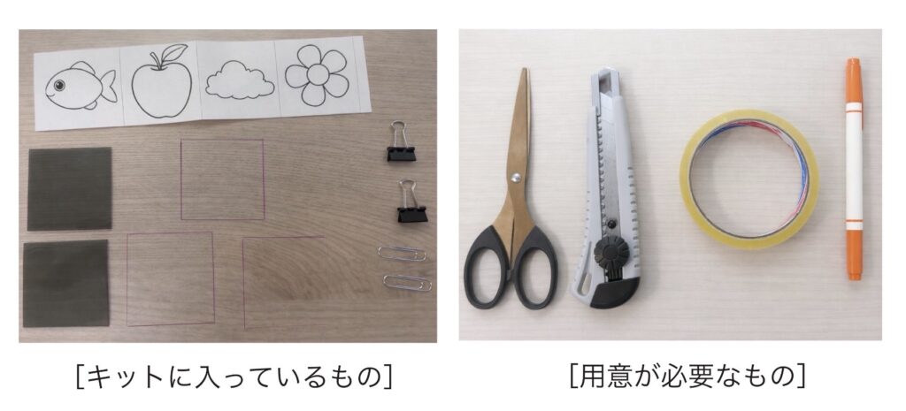 1.偏光板2枚とプラ板1枚を取り出す。
